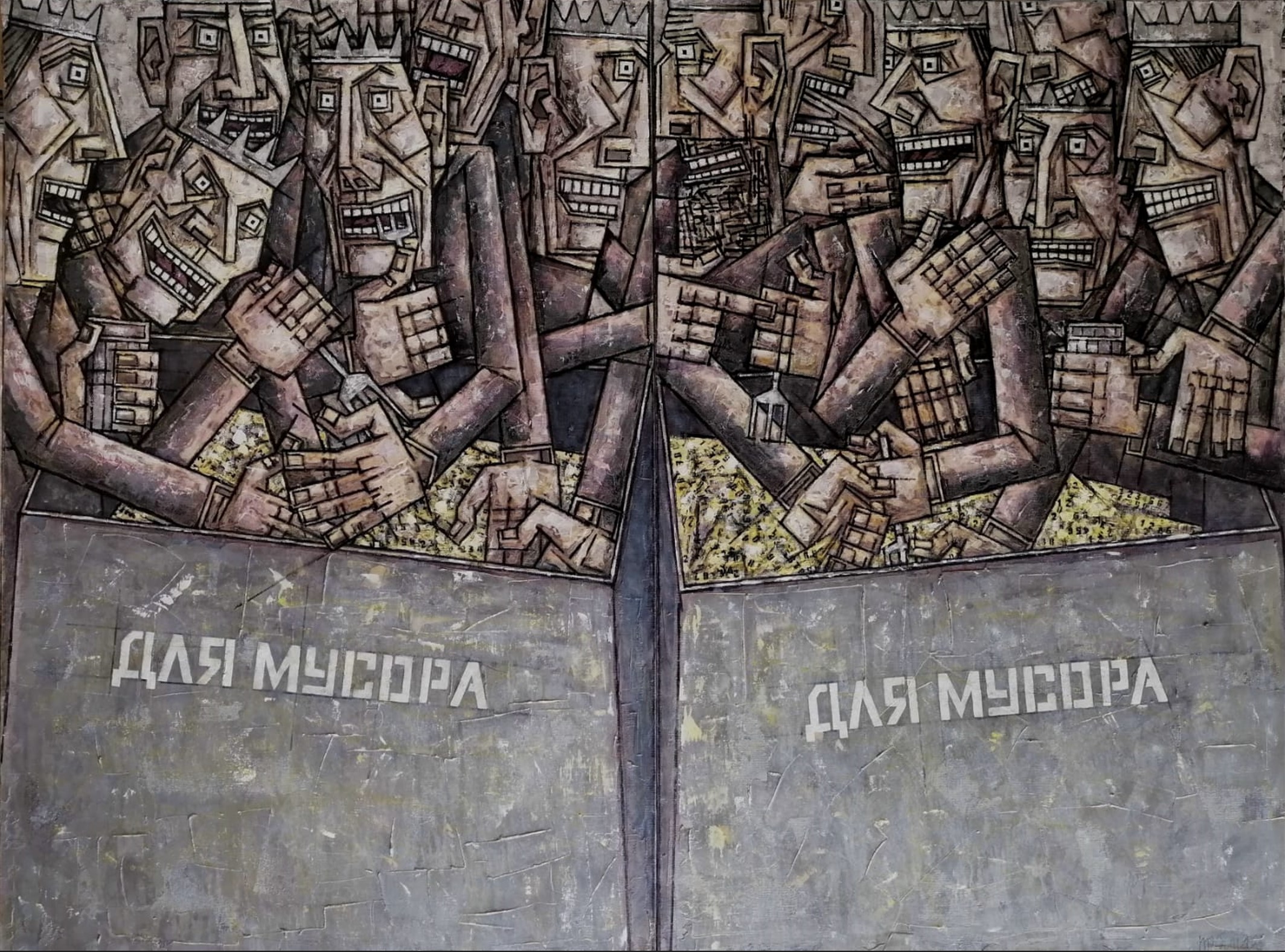 Холст, акрил, пеок, трафарет. 150х100х2