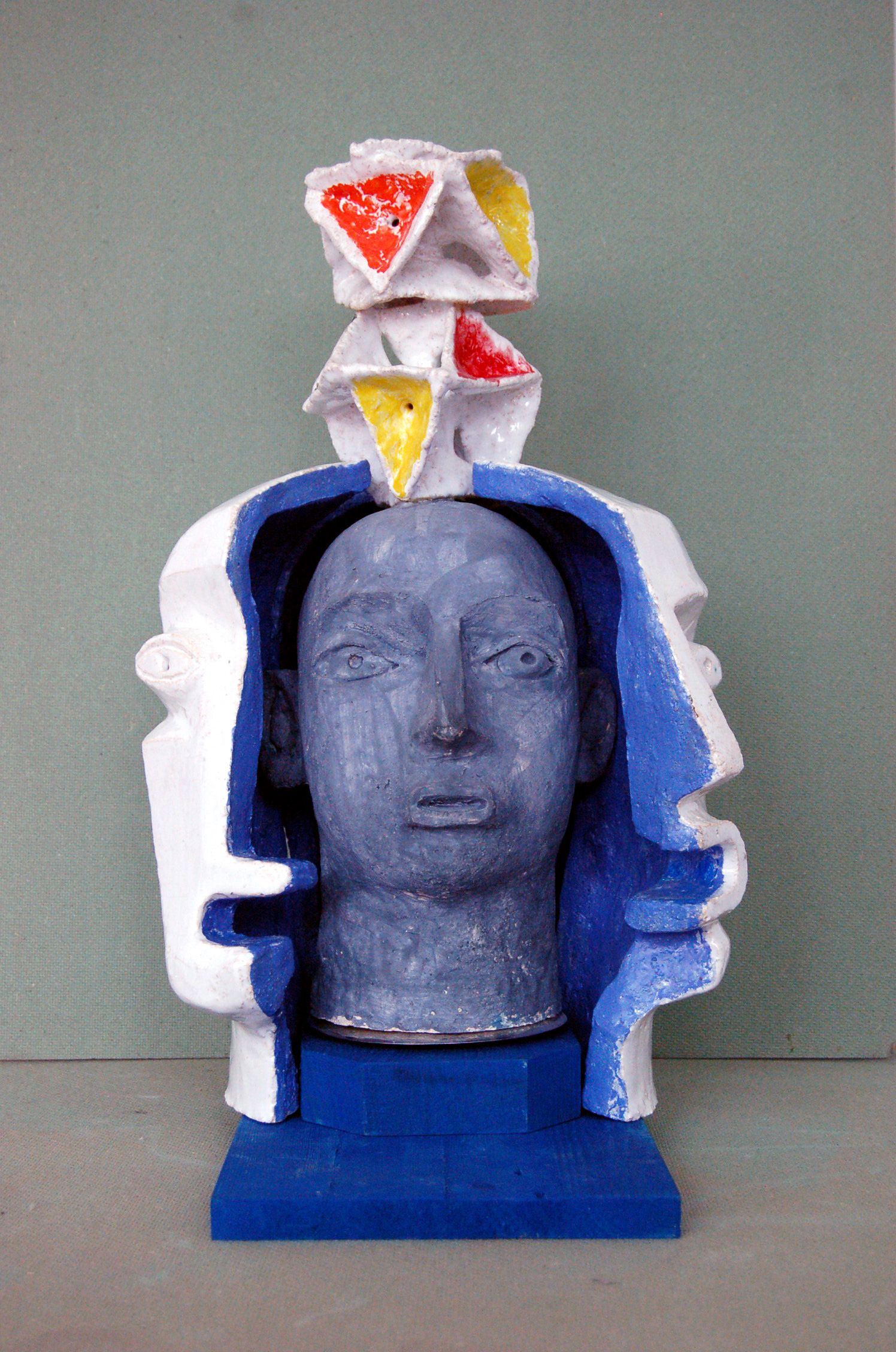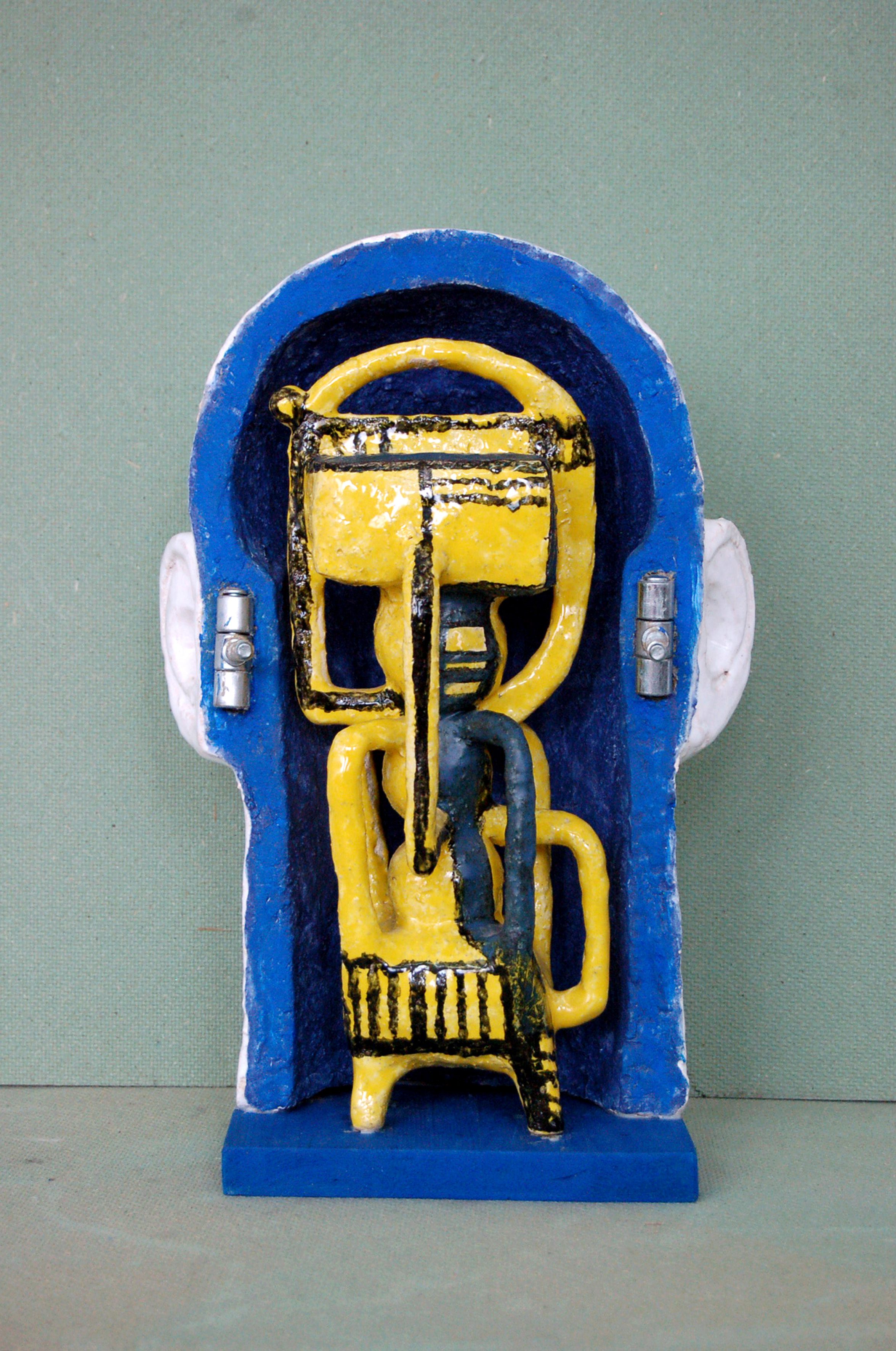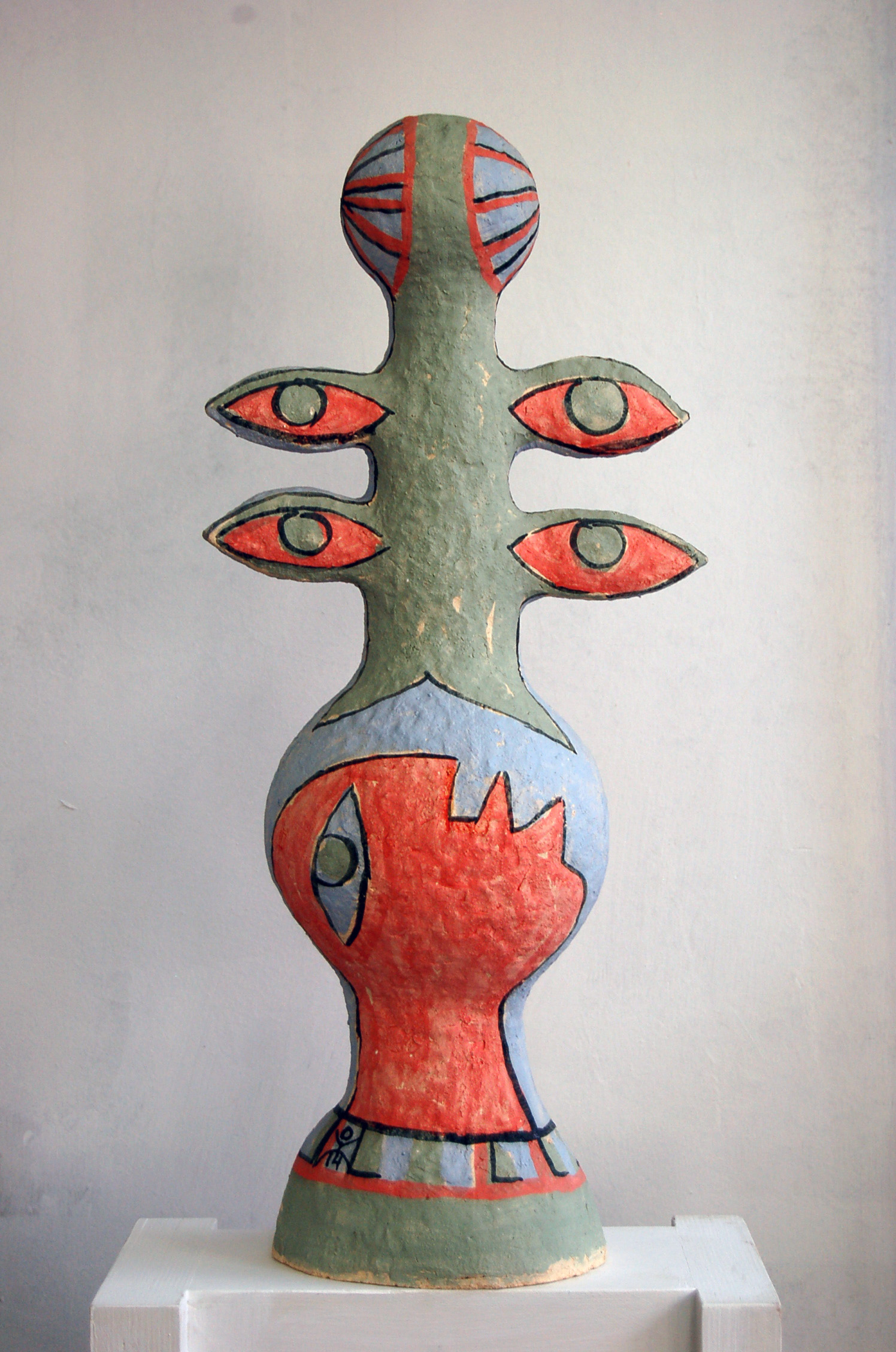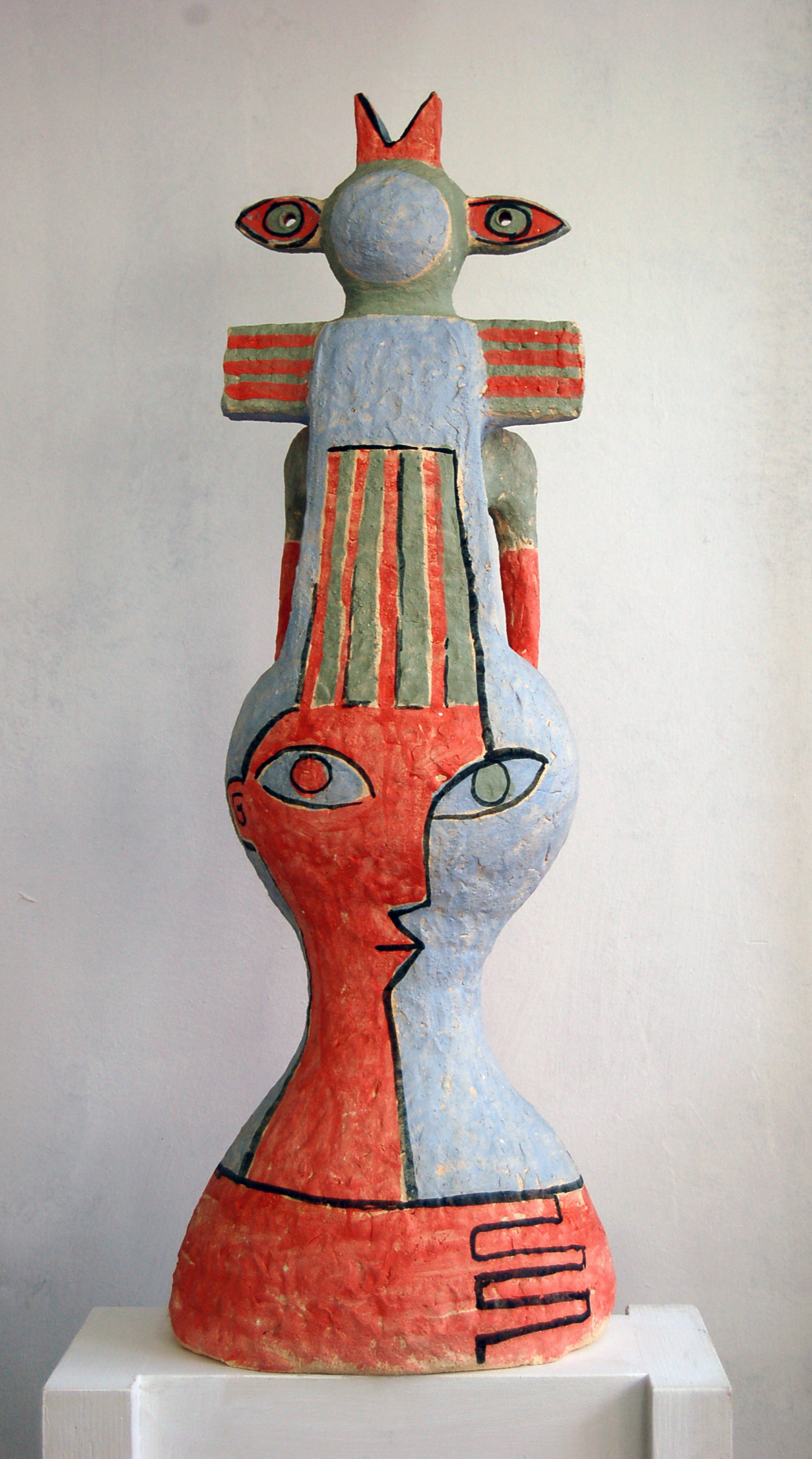 Шамот, ангобы, глазурь, металл, дерево, акрил. 43х32х30