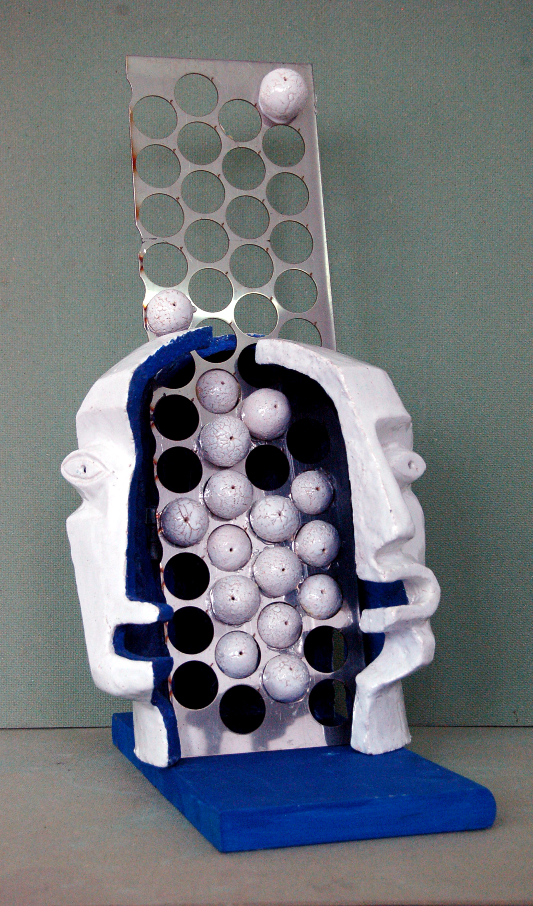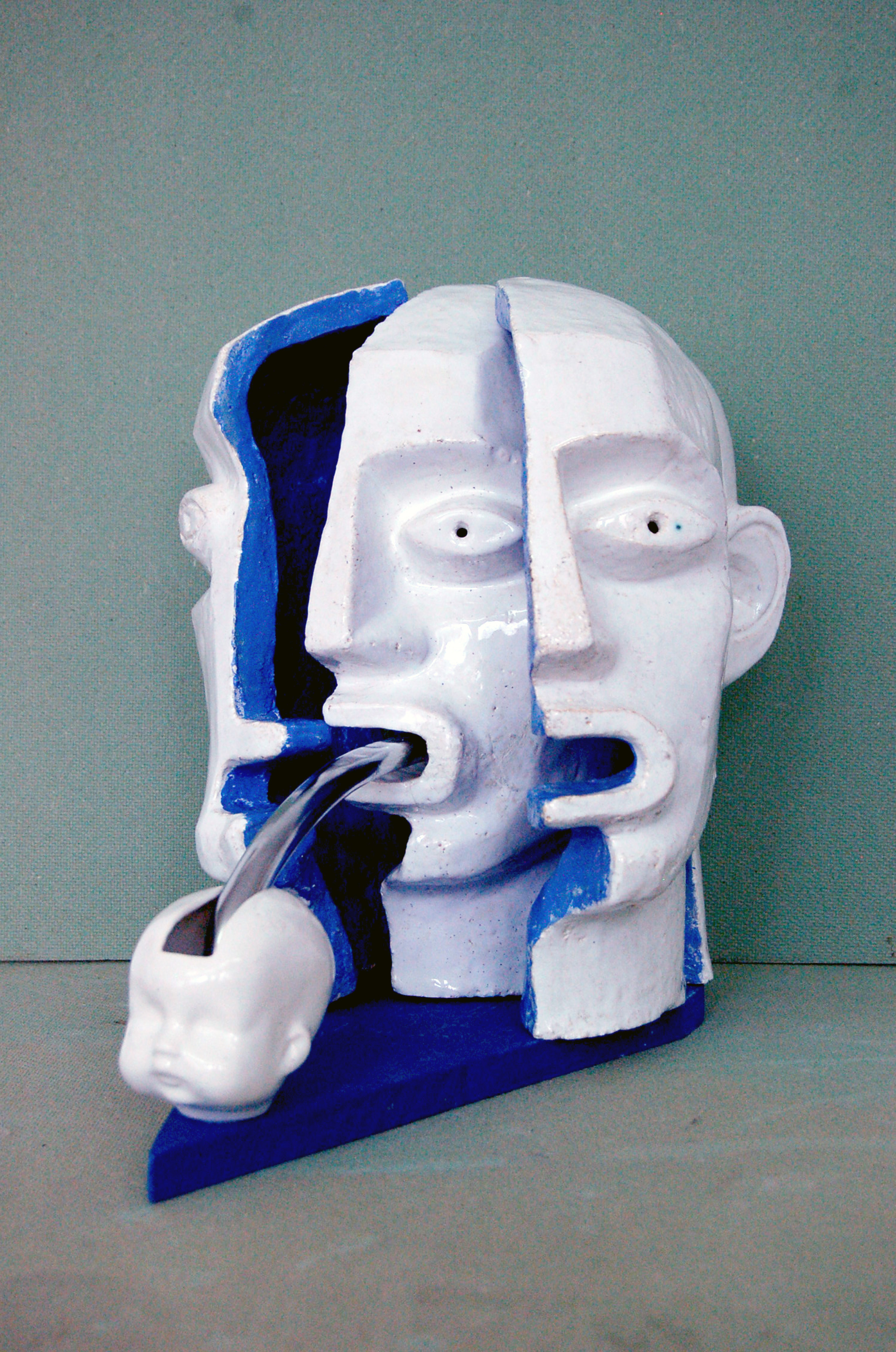 Шамот, ангобы, глазурь, металл, дерево, акрил. 50х32х30